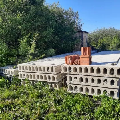 земельный участок,в городе719 кв.м.под строительство.залит фундамент, 8×12.есть стройматериалы,под дальнейшее строительство,кирпич,плиты,доски.Возможен торг.