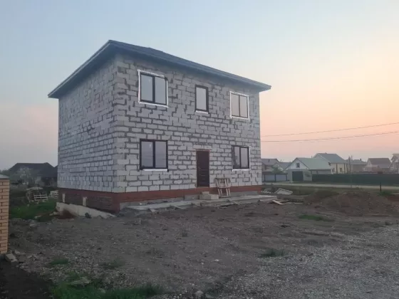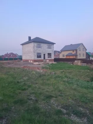 На участке скважина, по границе участка газ, центральная вода. Отсыпана площадка перед домом для авто, и рядом с домом для гаража. Стены отштукатурены, частично отшатлеваны. Куплены котел, радиаторы, трубы для отопления. Установлен каркас лестницы на монокосоуре. Куплены двери. Разведена полностью электрика. Сделан септик. Под всем домом полноценный подвал, высота потолков в подвале 2.6м, сделана стяжка. Высота потолков 1 этажа 3м, второго 2.7м. Строил для себя, при встрече все расскажу, какие материалы где использовал. Установлены дорогие окна с атермальными стёклами. Участок расположен в очень хорошем месте спутника, центральная улица. Асфальтированная дорога до участка, зимой чистят, освещение, хорошие соседи.