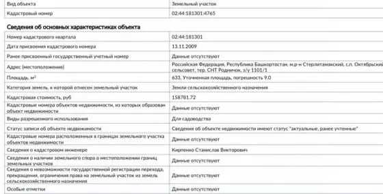 В избранное Участок в Башкортостан, Стерлитамакский район, Октябрьский сельсовет, Родничок СНТ 1101/1 (6.33 сот.)
