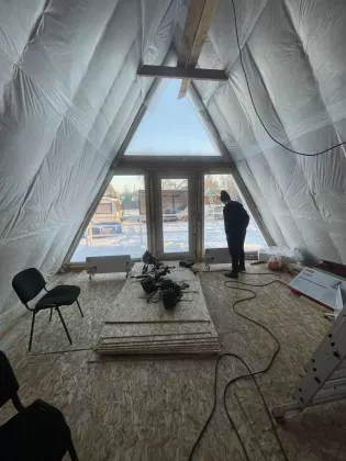 Продаем афрейм построенный в 2023 году утеплённый обшитый без отделки , хорошие панорамные окна , на полу УСБ . на участке электричество 380 есть баня бочка беседка . Участок находится в начале подъезд круглый год дороги чистятся постоянно . Хорошо использовать под сдачу . Есть скважина на участке . Все расскажу по телефону . Участок 7,6 соток в собственности .