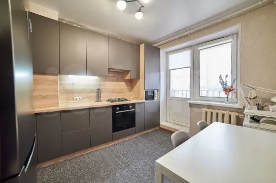 Продам 1-комнатную квартиру в новом районе Прибрежный. В квартире выполнен современный ремонт. Заменены натяжные потолки, элементы освещения.Качественный кухонный гарнитур ( + из техники остаётся варочная поверхность и вытяжка). Встроенные шкаф и гардеробная для удобства и максимально полезного использования пространства. Также есть возможность зонирования комнаты посредством шторы. Лоджия с панорамным остеклением. Лифт пассажирско-грузовой. Вся инфраструктура в шаговой доступности (аптеки, детские сады, школа, больница, магазины, пункты выдачи вб и озон). С торца дома сетевой магазин Монетка. Остановка общественного транспорта в 5 минутах ходьбы. Отличный вариант для тех, кто хочет сразу заехать и жить. СобственникТорг возможен при просмотре. На все вопросы отвечу по телефону в любое время :).