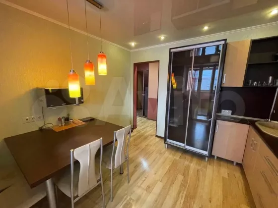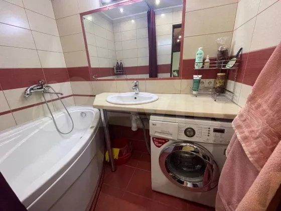 Благоустроенная 2-х комнатная квартира, полностью меблированная, окна выходят на запад на школьный стадион. Теплая лоджия. Рядом расположена платная автостоянка.