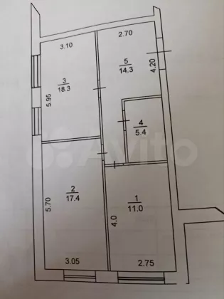 В избранное 2-к. квартира, 66,4 м², 1/5 эт.