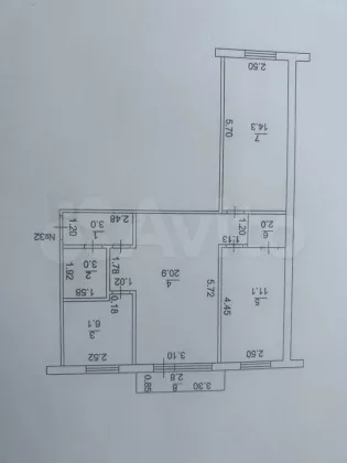 В избранное 3-к. квартира, 60,4 м², 3/5 эт.