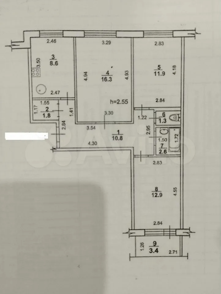 Продается 3-х комн. квартира, 66 кв.м., 6/9 эт
