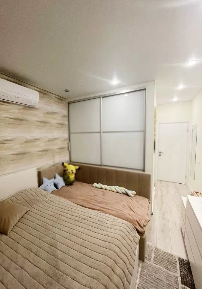 ПРОСЬБА АГЕНТОВ БЕЗ КЛИЕНТОВ НЕ БЕСПОКОИТЬ. Евротрешка 82,9 м2, с возможностью переделки в 3-х комнатную квартиру. Нововладыкинский проезд, 1к4 (ЖК Поколение, ФСК). Продажа от собственника, ремонт делали для себя по дизайн проекту. Про дом: 3-подъездный монолитный дом 2017 г.п., расположен в жилом квартале (класса Комфорт+) "Поколение", состоящим из 4-х корпусов. На территории ЖК 4 детских площадки, спортивные площадки, баскетбольное поле, частный садик и школа (Венда), есть вся необходимая инфраструктура (Магнит, Вкусвилл, К&Б, салоны красоты, пиццерии, бары, пункты маркетплейсов). Перед домом бесплатная парковка, справа от дома бесплатная парковка для жильцов этого дома под шлагбаумом, есть подземный паркинг. В доме находится консьерж, на въезде во двор – пункт охраны, территория двора огорожена, два лифта. Про квартиру: Квартир-распашонка, готова к проживанию (встроенная техника и мебель в наличии). Дизайнерский ремонт выполнен по проекту в светлых тонах, с применением качественных черновых и чистовых материалов. Шумоизоляция на полу, у соседей сверху на полу, а также между спальней и соседями. Потолки: 2.7 м, в комнатах натяжные, в кухне-гостинной + гипсокартон. Установлены кондиционеры в спальне и в кухне-гостинной. В каждой комнате и в коридоре шкаф-купе, все ваши вещи точно поместятся. Кухня-гостиная площадью 34 м2, есть возможность отделить комнату при необходимости. На кухне имеется вся необходимая техника (двухдверный холодильник, посудомоечная машина, плита, духовка, фильтр для воды, измельчитель), на кухне стоят доводчики Blum, под плиткой теплый пол. Два санузла: гостевой (1,2 м2) и ванная (4,2 м2). Две отельные комнаты 15,2 и 14,1 м2, окна смотрят на разные стороны дома, между ними ванная, постирочный уголок и гардеробная (в спальне). Из спальни выход на небольшой французский балкончик. Транспортная доступность: В пешей доступности метро Окружная (салатовая ветка), Владыкино (серая ветка), МЦК, МЦД D1, аэроэкспресс в Шереметьево. До входа в транспортный узел Окружная не более 3-х минут. Удобный выезд на Алтуфьевское шоссе, СВХ, рядом Дмитровское шоссе, до МКАД 8 км, до ТТК 10,9 км. В 10 минутах пешком от дома бесплатный детский садик, ТЦ Алтуфьевский , река Лихоборка, парк Отрада, 15 минут - до главного входа в Ботанический сад. Перед домом будет сквер на пути к Окружной. Юридическая составляющая: Первый собственник после застройщика, свободная продажа (без обременений и мат капитала). Полная стоимость в договоре. Подходит для ипотеки.