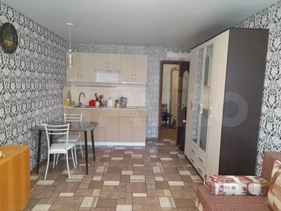 Продается квартира-студия, с хорошим косметическим ремонтом, остается хороший кухонный гарнитур, вытяжка, варочная панель. Остановка общественного транспорта, продуктовые магазины, детский садик находятся в шаговой доступности.