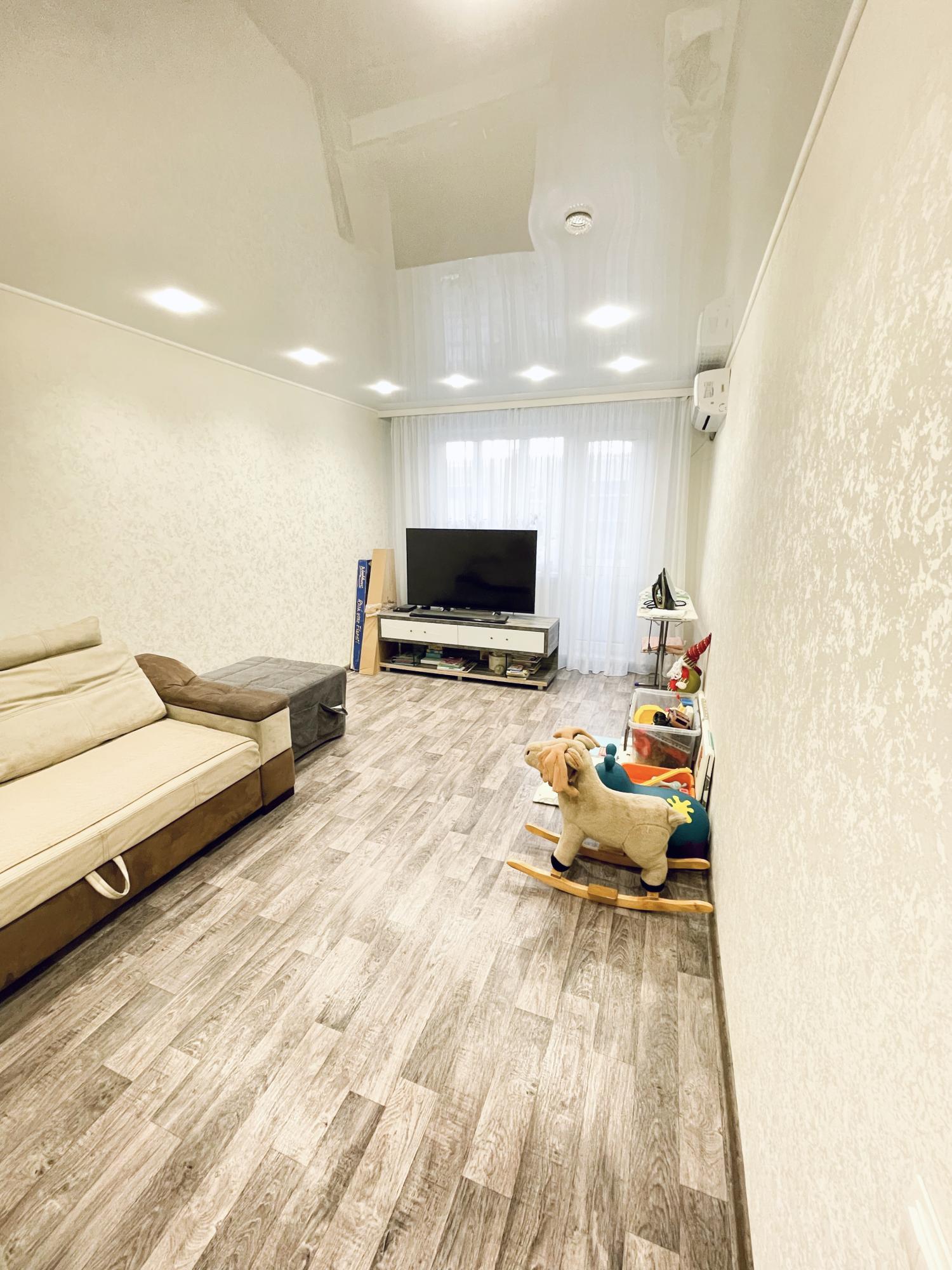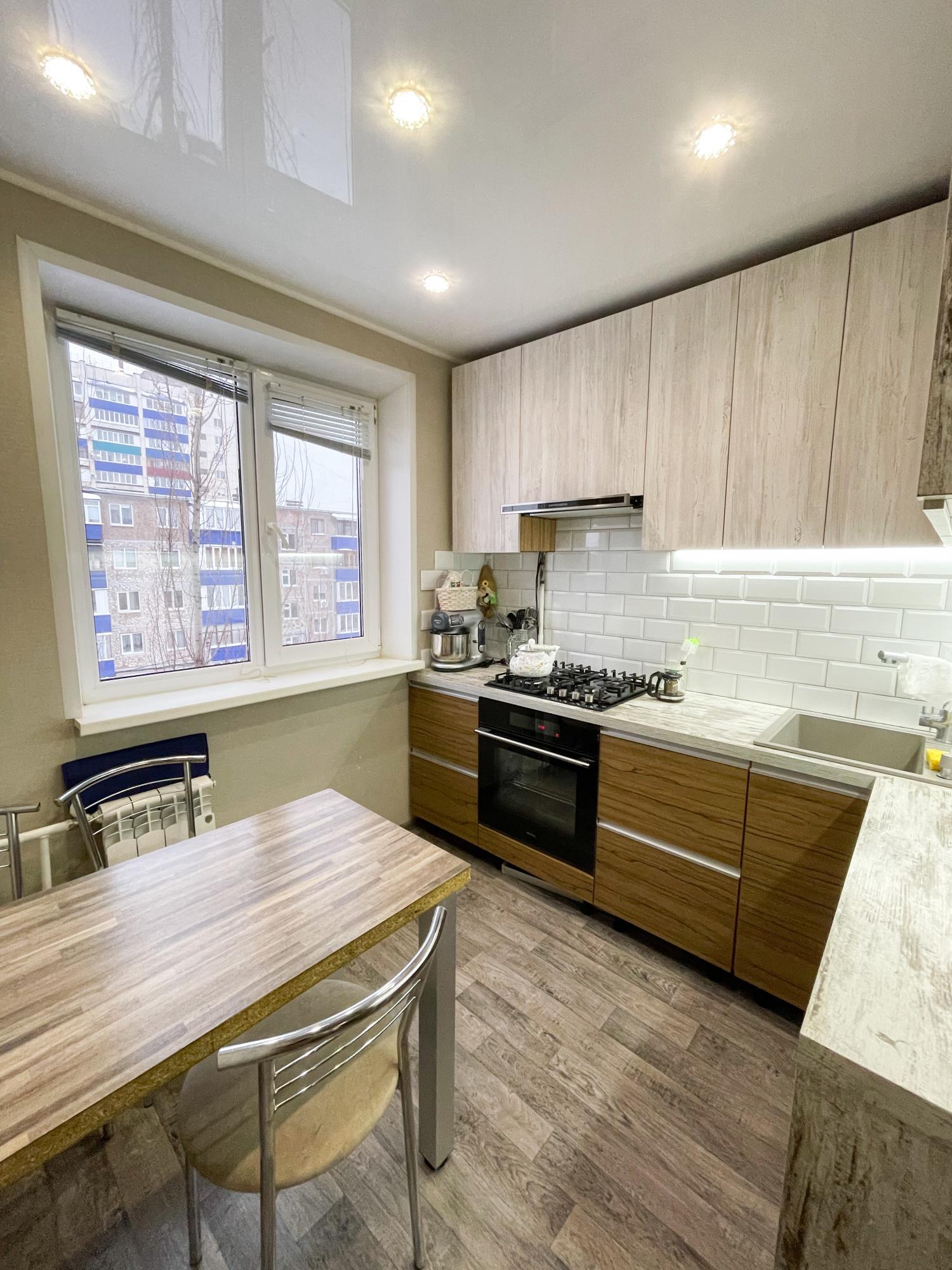 Уютная светлая двушка с раздельными ходами. Светлый современный ремонт, капитально заменена вся проводка, счетчик находится в квартире, установлена электрическая группа безопасности, выровнены стены под обои, сделаны полы (уложена фанера 10мм). Рядом расположены детский сады и школа, магазины и остановки. В квартире остается вся встроенная мебель - кухня, шкафы, прихожая, телевизионная тумба. Из техники остается варочная панель фирмы KUPPERSBERG, водонагреватель Ariston. Квартира полностью готова для проживания.