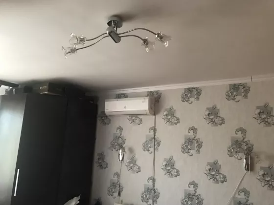 В центре города, на Вечном огне, школы, садики, магазины, общественный транспорт в шаговой доступности. Встроенная Кухня, 2 встроенных шкафа, полы ламинат, ванна, туалет - кафель. Квартира изолированная шума не слышно. 2 кондиционера, водонагреватель.
