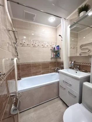 Продается трехкомнатная квартира (распашонка) в панельном доме. Сделан качественный евроремонт на совесть, для собственного проживания. Заменена вся проводка на медную, автоматы заведены в квартиру. Стены выровнены по маякам. На пол застелен OSB, а также утепленный пожаропрочный линолеум фирмы Tarket, имеющиеся щели запенены. Установленны новые чугунные радиаторы с секущими вентилями. Входная дверь фирмы Torex (Super Omega) - повышенная взломостойкость (2 замка + ночная задвижка), отличная шумоизоляция. Межкомнатные двери фабрики Волга - натуральный шпон, итальянская фурнитура Tixx. Натяжной потолок везде, кроме детской комнаты. Двухкамерные стеклопакеты, на окнах установлены детские замки. На окнах во двор горизонтальные жалюзи (кухня, спальня, балкон). Балкон с выносом от подоконника. Утеплен технониколем, обшит евровагонкой. Трубы (ванна/кухня) все поменены, новые водосчетчики. В ванной комнате - стальная ванна, безободковый унитаз Cersanit, сместители Frap, шкаф с зеркалом и подсветкой, водонагреватель Ariston на 30 литров. В 2023г была произведена замена газового стояка, установлен новый газовый счетчик. На кухне встроенный кухонный гарнитур, с интегрированными ручками на дверцах шкафов. Шкафы с доводчиками. Посудный шкаф с подъемным механизмом. Варочная газовая панель фирмы Leran. В области фартука выложен кафель в виде многоугольника, фирмы Kerama Marazzi. Окна квартиры выходят во двор (спальня, зал, кухня) с видом на хоккейный корт, большую детскую площадку, а также заднюю сторону дома (большая спальня). Имеется кладовка 2кв.м. В этом районе сильно развитая инфраструктура. Во дворе, пройдя один дом, не переходя проезжую дорогу находится школа 24 (с углубленным изучением иностранных языков), и неподалеку школа 17; также рядом расположены детские сады 44, 49, 54, 58; педколледж, музыкальный колледж, драмтеатр, бассейн Вега. За домом расположена автобусная остановка (проходят практически все маршруты). В доме пункт выдачи Ozon, Wildberries. У дома - Чижик, Ярмарка, Fixprice, Пятерочка, Монетка, Магнит, Rostics 24/7, Находка, Leo Kids (развлекательный детский клуб) Гипермаркет Магнит. До детской и взрослой поликлиники 13 минут пешком в спокойном темпе. До набережной 15 минут пешком. Очень хорошее ЖЭУ 8, зимой своевременно чистят дорогу, парковку от снега, украшают двор иллюминацией. Часто проводят летние дворовые праздники для детей. Также есть детский клуб Ровестник, где проводятся бесплатные досуговые занятия для детей.