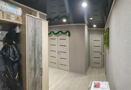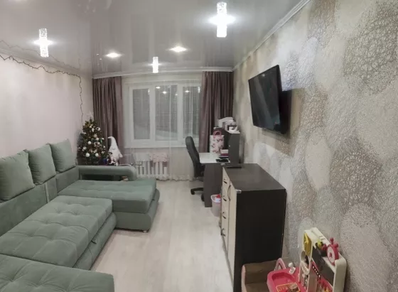 Продам. Остаётся шкаф в зале, кровать в спальне 2 на 1,8, кухонный гарнитур, бойлер, прихожая, обувница, остальное по договоренности. Балкон обшит вагонкой, на балконе шкаф тоже остаётся. По всей квартире качественный линолеум. Натяжные потолки кухня, коридор, спальня, зал. Санузел, ванная отделаны панелями. Теплая уютная квартира, соседи хорошие, спокойные. Окна во двор, тишина. Имеется небольшая детская площадка, дет. сад 22 прям у дома. Магазины, остановки все в шаговой доступности