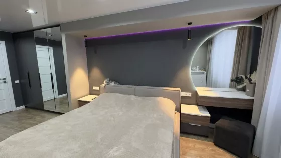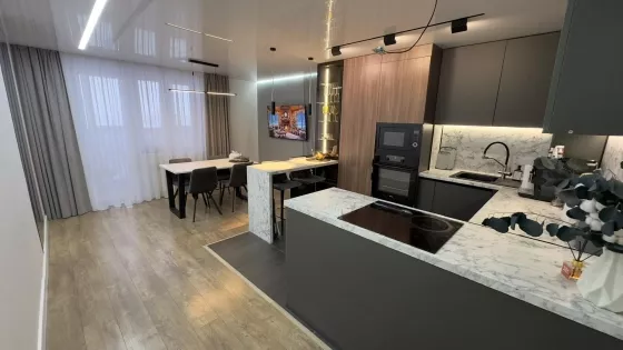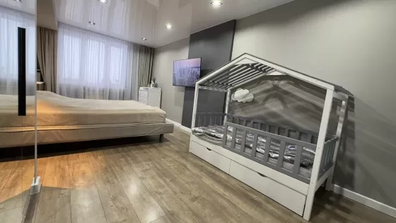 Всем доброго времени суток! Продаем собственную квартиру с шикарными видами из окон. В самом новом районе города, вся инфраструктура находится в шаговой доступности. В квартире выполнен ремонт по индивидуальному дизайн-проекту, только из качественных и дорогих материалов. Балкон утеплен, установлены радиаторы, двойные стеклопакеты, дополнительное освещение , чистый, обустроен для комфортного отдыха. Квартира эксплуатировалась только в чистоте и порядке. Очень светлая, с множеством световых решений, так же в дневное время зал оснащен большим количеством солнца! Зимой квартира очень теплая, теплые полы можно даже не включать, а летом квартира обдувается прохладным, сквозным ветром при открытии окон. Жары не наблюдалось. Новым хозяевам остается вся встроенная мебель и техника, а так же детская кроватка в подарок! Посудомойка, микроволновка, духовой шкаф, варочная панель, холодильник, очиститель воды, бойлер и вся мебель, которую вы видите на фото. Квартира идеально подойдет для большой семьи с маленькими детками, вместительная, чистая и оснащена всем необходим . Заезжай и живи!