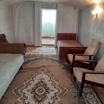 участок с домом 58.3 м2 двух этажный,построенный из кирпича с верандой,в доме 3 комнаты,зал,кухня,банька,на втором этаже комната с балконом на весь дом,на окнах решётки,установлен эл.счётчик,на участке построен хозблок с туалетом тоже из кирпича,все качественной постройки,имеются насаждения яблоня вишня смородина малина,имеется также место под стоянку автомобиля,все в собственности земля,дом,оставляем все хозяйство,от города 8км,автобус ходит 5раз в день,ухожен сад